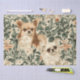 Un design élégant et fantaisiste avec d'adorables crème aux cheveux longs, des chihuahuas peints en faon et blanc entourés d'éléments botaniques luxuriants de style vintage. Les chihuahuas, aux grands yeux bruns expressifs et aux manteaux moelleux, sont posés sur un fond de fleurs délicates, de feuilles et de fruits à la grenade dans des teintes douces de vert, de pêche et de crème. Le mélange de chiens joueuses et de motifs inspirés de la nature crée une esthétique charmant, animée et sophistiquée, tandis que la palette de couleurs feutrées donne au design une atmosphère intemporelle et cosy. Idéal pour les anniversaires ou les cadeaux de Noël.