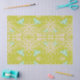 Luna moths alight on this delicate background of lime and dainty palest pink florals.