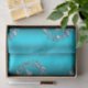 Ajoutez une touche d'élégance moderne à vos cadeaux de vacances. Cette feuille de papier d'emballage luxueuse présente un design contemporain qui se démarque des imprimés traditionnels festifs. Un superbe motif de rennes étincelants est niché dans une couronne métallique sophistiquée de Noël, créant un look frappant et élégant, le tout sur un fond coloré en dégradé d'aqua. La finition de haute qualité et la finition subtile du papier captent la lumière magnifiquement, rendant vos cadeaux spéciaux. Parfait pour ajouter une touche chic et mémorable à tout cadeau, ce design unique est sûr d'impressionner tout le monde sur votre liste.