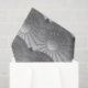 Papier de soie de soie dans un motif abstrait de mandala dans un gradient de satin des disques de recouvrement se concentrant sur une roue spoked des étoiles - nuances de gris argenté/de gris légers au gris de graphite
