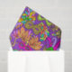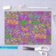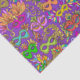 Ce papier de tissu festif est idéal pour envelopper des cadeaux et des projets artisanaux. Il présente l'art de masques de Mardi Gras dans une parade de couleurs dans les tons vert, violet, orange, rose, aqua et or sur un arrière - plan violet. Conçu par un artiste de renommée mondiale © Tim Coffey.