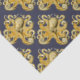 Papier de soie de soie nautique avec un motif vintage jaune de poulpe au-dessus d'un arrière - plan de minuit foncé de bleu marine.