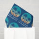 This cute custom Hawaiian Christmas party tissue paper features a tropical beach sunset on a cool blue background with a drawing of coastal palm trees against a seaside sunset. Mele Kalikimaka written in cursive typography on these pretty personalized holiday gifts.