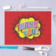 Illustration de style comique Merci avec design de texte dans des couleurs vives. Il est possible de changer la couleur arrière - plan et d'en ajouter une autre dans le design avec votre choix.