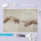 La Création d'Adam par Michelangelo Peinture chef-d'oeuvre - La Création d'Adam est l'un des tableaux les plus célèbres au monde, créé par le maître-artiste Michelangelo à Rome. La Création d'Adam est une fresque classique que Michel-Ange a peinte dans le Vatican de Rome, sur la Chapelle Sixtine, en 1511-1512. La Création d'Adam imprimée sur notre don est une partie de la fresque, montrant toute la création de l'Homme dans le Livre biblique de la Genèse, où Dieu (à droite) donne vie au premier homme, Adam (à gauche). Le tableau montre la presque touche des mains, entre Dieu et Adam. L'image est un tableau emblématique de la Renaissance. Michel-Ange montre Dieu comme un vieil homme aux cheveux blancs et barbus blancs, portant un long vêtement blanc. Dieu et Adam ont tous deux leurs bras tendus l'un à l'autre, comme si Dieu générait une étincelle de vie dans le nouvel homme Adam. La peinture de Michel-Ange montre la ressemblance de l'homme à Dieu, montrant Dieu créé des humains à son image.