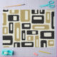 Retro Mid-Century Abstrait moderne Motif noir blanc & or.