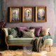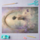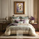 Une silhouette solitaire vêtue d'une robe de bal fluide est assise dos à nous, regardant à travers une arche ovale ornée dans un monde lumineux rempli de fleurs au-delà. Ce panneau éthéré de la collection Delicate Moments mélange le style de peinture à l'huile impressionniste à une narration romantique — entourant la femme élégante d'iris violets en cascade, de cosmos sauvages et de lumière dorée douce qui attire l'œil vers l'intérieur.