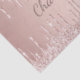 Un arrière-plan de couleur rose gold, métallisé, avec des gouttes de paillettes factices et un effet de peinture qui coule. Personnalisez et ajoutez un nom. Le nom est écrit dans un style d'écriture manuscrite moderne. Pour les cadeaux d'anniversaire, les enterrements de vie de jeune fille et les baby showers.