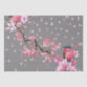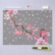 Cerisiers roses mignons en fleurs avec oiseaux roses motif et arrière - plan gris