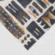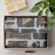Décor de tissu de boue africaine peint à la main, aux formes géométriques audacieuses dans les tons terre de noir, marron et crème.
