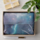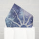 Les particules de gaz et de poussière tourbillonnent dans l'espace, créant des nuages magnifiquement colorés occupant l'espace entre les étoiles. Agissant comme pépinière pour de nouvelles étoiles, cette nébuleuse nuageuse est bleu clair et violet. Un motif astrologique blanc avec planètes et étoiles a été ajouté au sommet