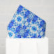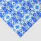 Papier de tissus à effet batik, motif carrelé, avec éléments floraux abstraits, dans les tons denim, cobalt et bleu ciel contre un arrière - plan blanc