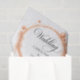Un design élégant aux reflets de pêche présentant des accents circulaires doux et une écriture calligraphique délicate, parfait pour un emballage de mariage romantique. Idéal pour emballer des cadeaux, des faveurs ou ajouter une touche raffinée et coordonnée à votre suite de papeterie de mariage.