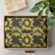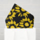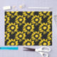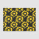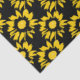 Papier de tissus imprimé avec motif de tournesol jaune ensoleillé sur un arrière - plan noir.