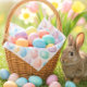 Papier Mousseline Motif d'oeufs de Pâques bleu pastel rose