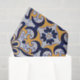 Design en tuiles portugaises avec décoration florale bleue, blanche et jaune
