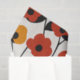 L'image présente un motif floral vibrant avec des fleurs stylisées rouge et orange, chacune avec des centres noirs audacieux. Les fleurs sont reliées par de fines tiges noires et des feuilles, le tout dressé contre un arrière - plan léger. Le design est minimaliste mais frappant, évoquant une esthétique moderne rétro ou du milieu du siècle avec ses lignes épurées et ses couleurs contrastées.