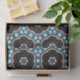 Motif décorative transparente aux formes géométriques en noir sur un arrière - plan bleu et blanc.