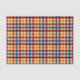 Ce papier tissulaire présente un motif plaid en jaune, orange, rouge et bleu contre un arrière - plan blanc.