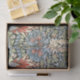 Cette conception est basée sur un motif créé par le designer britannique William Morris (1834-1896), qui était également écrivain, détaillant et militant politique associé au Mouvement des arts et de l'artisanat. Ce motif à tête de serpent a été fortement influencé par les cotons contemporains importés d'Inde, en particulier dans l'utilisation de rouge et de bleu fortement contrastés, ainsi que la façon dont les formes 3D de feuilles et de fleurs ont été transformés et représentés comme d'élégantes illustrations plates. En effet, William Morris admirait beaucoup le fait que les cotons indiens étaient généralement imprimés à la main avec des teintures naturelles, plutôt que chimiques, et il cherchait à utiliser des couleurs naturelles dans ses propres tissus. Le motif d'origine a été conçu pour la première fois par William Morris en 1876.