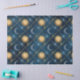 Ce design céleste présente des soleils jaunes et des lunes bleu-gris dans un motif en diamant sur un arrière - plan bleu. Idéal pour découpage, fabrication de papier ou emballage de cadeaux.
