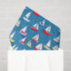 Motif avec illustration de voiliers rouges et jaunes sur arrière - plan bleu.