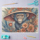 Beautiful and mystical fun chimp monkey with flowery hat. Perfect for all your decoupage projects and furniture transformation decoupage transferts.