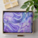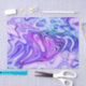 Marbrure de tourbillons d'encre en violets et bleus gras sur fond blanc.