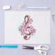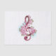 Pink treble clef with delicate, detailed pink Japanese cherry blossoms against white background painted over with light blue paint Blooming pink sakura.