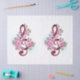 Pink treble clef with delicate, detailed pink Japanese cherry blossoms against white background painted over with light blue paint Blooming pink sakura.