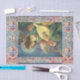 Jouer de la musique ange, chefs-d'oeuvre de la Renaissance italienne classique de Melozzo da Forli, détail d'une fresque c.1480.Design de Noël élégant, classique, lumineux et joyeux avec saphir bleu 3D brillant et pierres de rubis rouges, perles blanches précieuses.