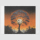 A dramatic tree silhouette stands against a glowing orange sunset sky, surrounded by birds and magic. A mystical, atmospheric design perfect for nature-inspired or seasonal projects.