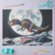 Papier Mousseline Neon Dinosaur Raptor Moon Decoupage Paper