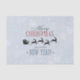 Papier de tissu de noël festif. Un arrière - plan gris subtil avec des flocons de neige. Lettres tendance qui dit : Joyeux Noël et Bonne Année. Avec une silhouette noire de père Noël dans son traîneau tiré par son renne volant à travers le ciel.