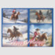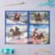 Ce design de Noël amusant montre Saint Nicolas et d'autres cow-boys à cheval dans la neige.