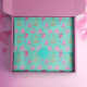 Un joyeux motif de Noël aux pins roses et dorés, des cadeaux et des flocons de neige sur un arrière - plan vert d'aqua menthe.