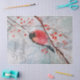 Papier Mousseline Noël Hiver Rouge Robin Aquarelle Oiseau