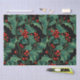 Motif de Noël contemporain classique avec branches de plantes saints et baies rouges