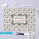 Pour les magasins qui font de l'emballage cadeau, votre nom d'entreprise, votre ligne d'étiquettes ou vos coordonnées deviennent un moyen de diffuser l'information sur votre boutique de cadeaux. Les cônes de pin d'aquarelle et l'aiguille avec des feuilles saints, des baies rouges et des Mistletoe sont éparpillés comme un motif autour d'un cadre d'éléments plus grands avec typographie "MERRY CHRISTMAS", dans un cadre de parties scintillant doré à défilement et votre nom de famille personnalisé. C'est partout sur un arrière - plan de bois blanc de cottage. Graphiquement conçu par Audrey Jeanne Roberts, artiste et designer de renommée internationale, copyright.