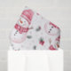 Ces mignons petits bonhommes de neige ont l'air si heureux dans la neige. Ils sont tous habillés de foulards d'hiver tricotés rose vif et assortis de casquettes. Ce motif fantaisiste comprend également quelques morceaux de baies de vacances roses et rouges et de végétation de pin de Yuletide dans une aquarelle vintage.