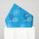 🎄 Noël 🎾 tennis bleu et blanc Tissue Paper. Motif de Noël blanc avec des flocons de neige et des raquettes de tennis sur arrière - plan bleu bébé.