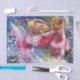 Peinture acrylique colorée, capricieuse et artistique, Père Noël joue de la harpe au clair de lune, hibou, ornements floraux, plantes d'hiver, jouets pour enfants, baies sèches dans des couleurs rouge vif, vert, blanc, bleu, jaune. par Bulgan Lumini (c)