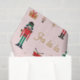 Ce papier de tissu de Noël de noisette présente un motif mignon et fantaisiste de noix de cou, un roi de souris et des ballerines dansantes sur un arrière - plan rose avec le dicton "Fa la la". Un cadeau mignon et fantaisiste pour la saison des fêtes !