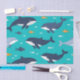 Papier Mousseline Ocean Whales Dolphins Pattern