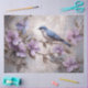 Papier Mousseline Oiseau bleu avec fleurs violettes Découpage