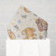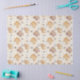 This cute design features a whimsical orange cat in various positions with yarn, stars, and toy mice details. Perfect for cat themed birthday parties or gifts for cat lovers.