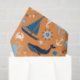 Le thème océanique et nautique présente baleines, voiliers bleu marine, poulpes, crabes, hippocampes, roues de bateaux, ancres, phares, et plus sur un arrière - plan orange coloré. Ce design à thème océanique se retrouve sur les poufs coussin, coussins, couvertures en toison, plateaux de service, serviettes de cuisine, ensembles de salle de bain, boîtes et sacs, plaques et serviettes en papier, ruban, papier de tissu, boîtes de bonbons, boîtes de chocolats, flacons, cartes à jouer, autocollants et tant d'autres articles!
