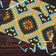 Papier Mousseline Orange Turquoise Noir Ethnic Motif Boho