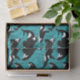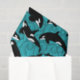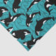Ajoutez une touche aquatique aux cadeaux avec ce papier de tissu illustré qui présente des illustrations d'orques ou d'orques en noir et blanc dressées contre un arrière - plan turquoise des vagues bleues de l'océan.