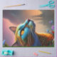 Papier Mousseline Oriental bleu calico chat sauvage, Imaginaire